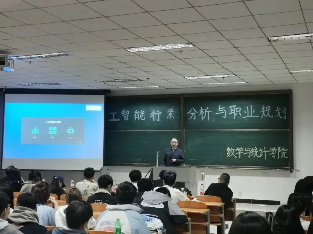 4月7日晚,Bwin必赢网址在主c401教室成功举办"人工智能行业分析与职业规划"讲座。此次活动得到了20级和21级部分同学的积极响应,参与人数达到百余人。